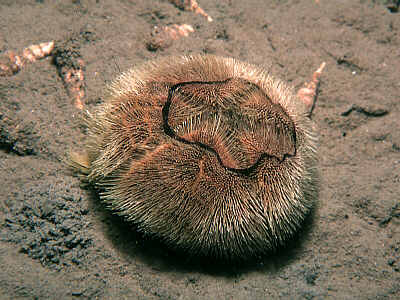 gleiche Länge aufweisen. Das Tier hat einen Durchmesser von ca.15cm und kommt nahezu überall auf den Hartböden der britischen Meere vor, wo es Algen und kleine Krustentieren weidet..