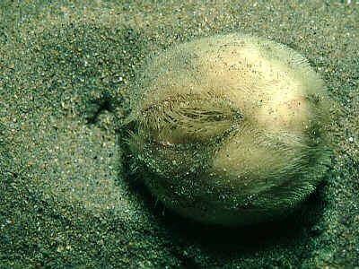eingesunkenen Abulakralsystem übereinstimmt. Die Größe reicht bis zu 9cm. Die Tiere leben in den Boden eingegraben (10-15 cm tief) und sind daran zu erkennen, dass die Sandoberfläche eine konische Eindellung