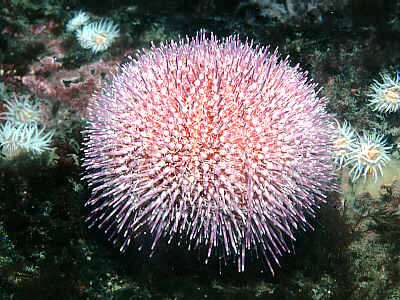 Diesen Seeigel findet man üblicherweise in den seichten Gewässern rund um die Britischen Inseln. Er ist kugelförmig und rosa gefärbt.