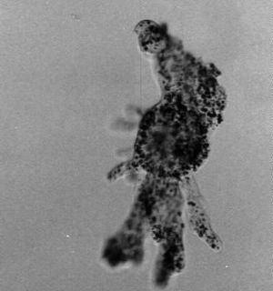 werden umflossen, um so eine Nahrungsvakulole im Körperinneren zu bilden. Dies geschieht durch Überlappung und Verschmelzung der Pseudopodien (Phagocytose). Die Vakuole wird dann mit Verdauungsenzymen
