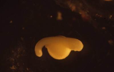 Deutlich ist der Schwanz zu erkennen, ebenso die Kopfknospe.